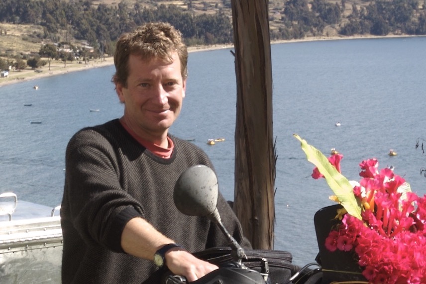 Photo: Author, Bike Blessing. Lake Titicaca, Bolivia